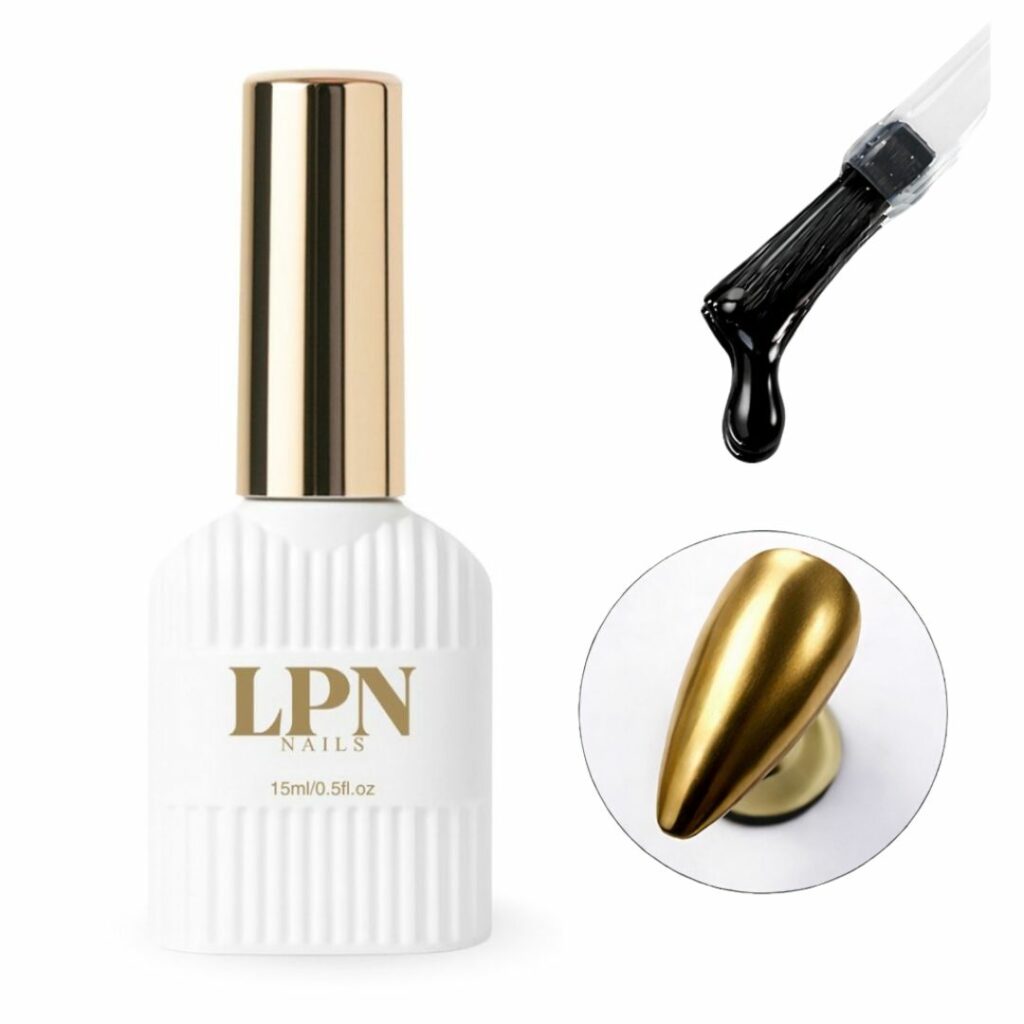 La Chrome Base LPN Nails est une base innovante conçue pour optimiser l’adhérence des poudres chrome et obtenir un rendu parfaitement lisse et uniforme. Sa formule spécifique permet de créer la surface idéale avant l’application de la poudre, pour un effet miroir intense et un résultat sans défauts.
